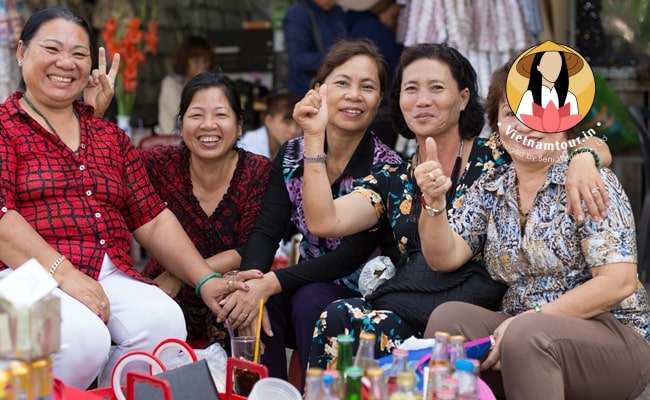 Vietnamese people gather together in Tet Holidays